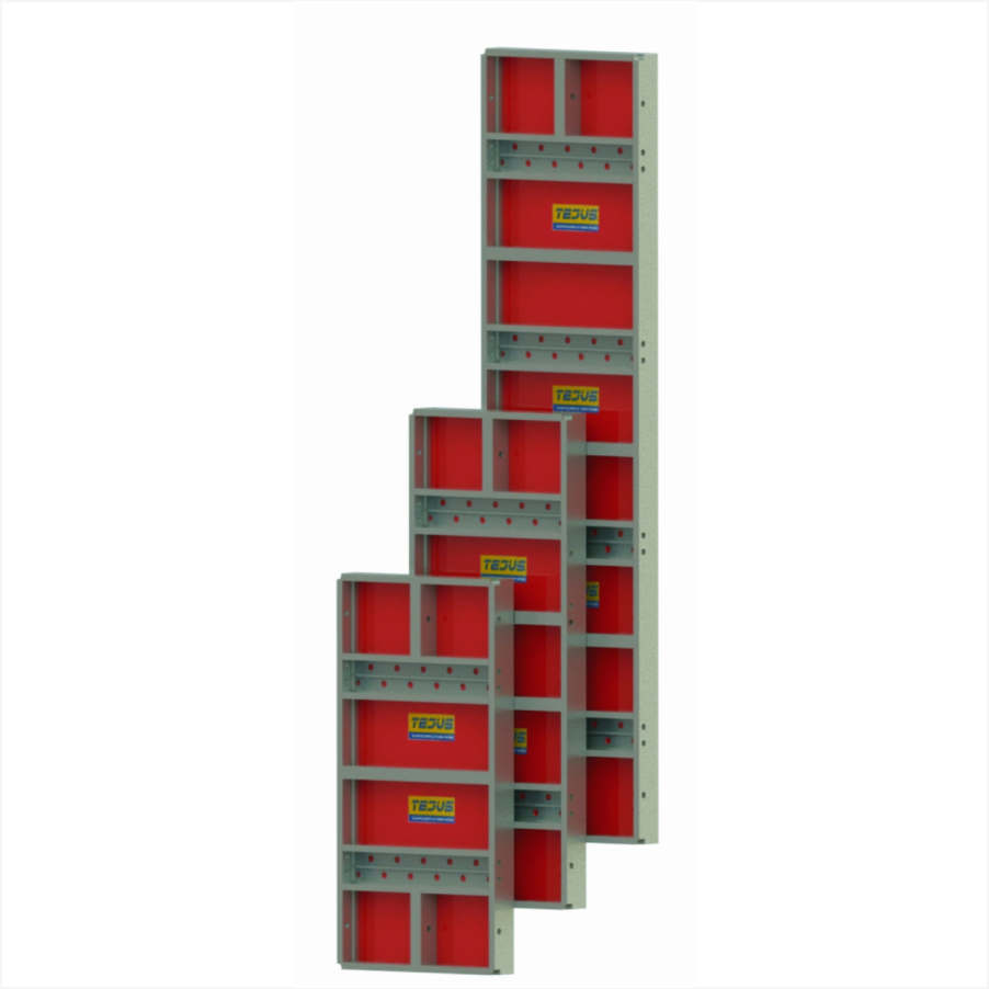 Tejus Centering offers ALUPLEX shuttering systems for retaining walls, fixed and adjustable columns, and lift corewalls—engineered to provide maximum strength and efficiency. These lightweight aluminum panels eliminate the need for a tower crane and are available in variable heights (1200–3000 mm) and widths (300–900 mm).
