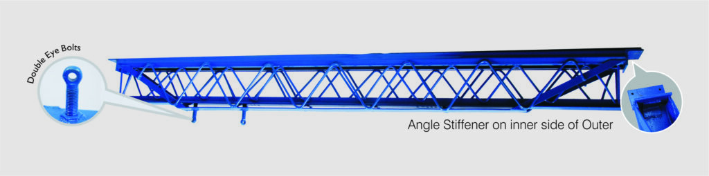 - Outer: Manufactured from 2mm HRC sheet (Section), 65 x 6mm MS Flat, 10mm Round Bar, 65x8mm Corner Angle and Double M20 Nut bolting provision. Extra stiffener of 35x5mm ISA is welded from Inside for more strength & durability